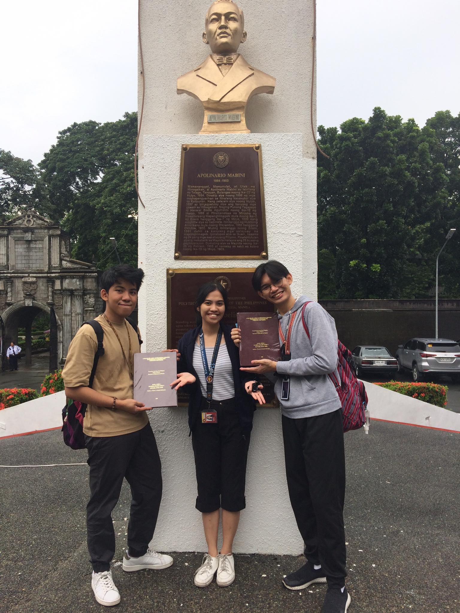 to take a photo on one of the landmarks of PUP known as the "Obelisk" to signify our defended research paper and eventually